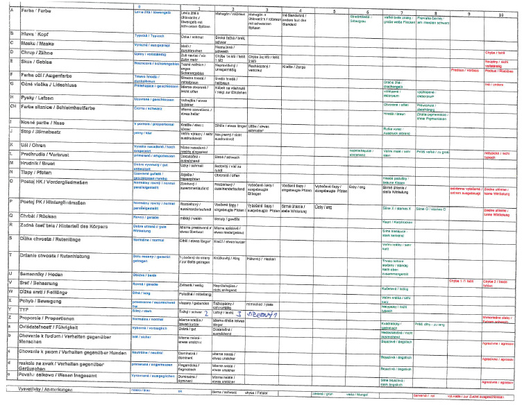 Frodko je JCH Slovenska a měří 74cm, váží 68kg, HD B/A, LPN1 N/N a více na bonitační kartě