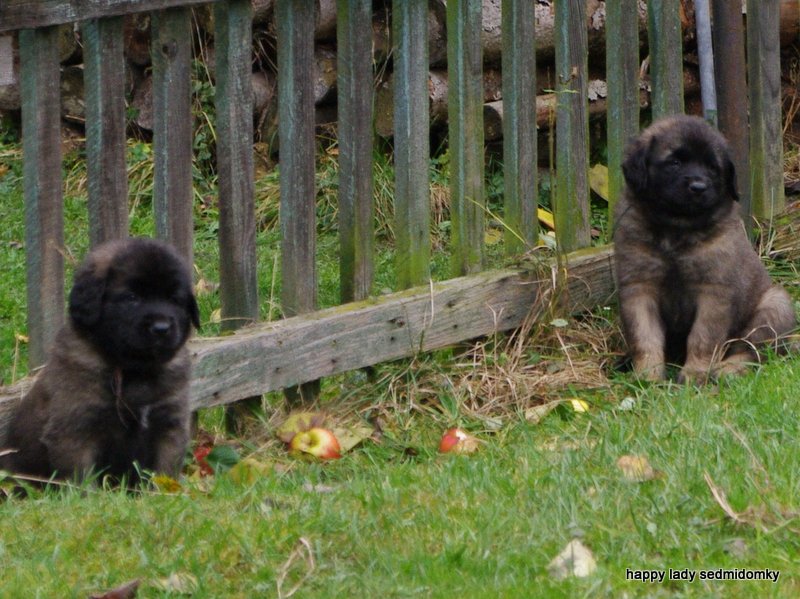 Štěňata se venku rozbíhají do všech koutů a užívají si relativně pěkného počasí a taky „mazlících návštěv“ a doma pak spí na prahu dveří jako velcí leoni