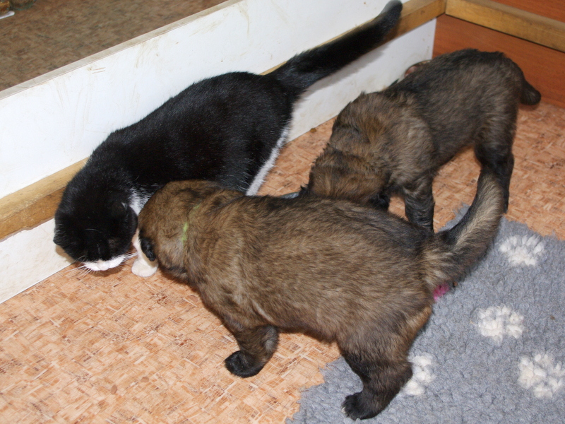 Onni s Orsou měl den plný novinek a překvapení. Největší z nich asi byla kočka Zuzana, která se rozhodla, že nebude čekat, až bude opuštěná miska a šla baštit s nimi.